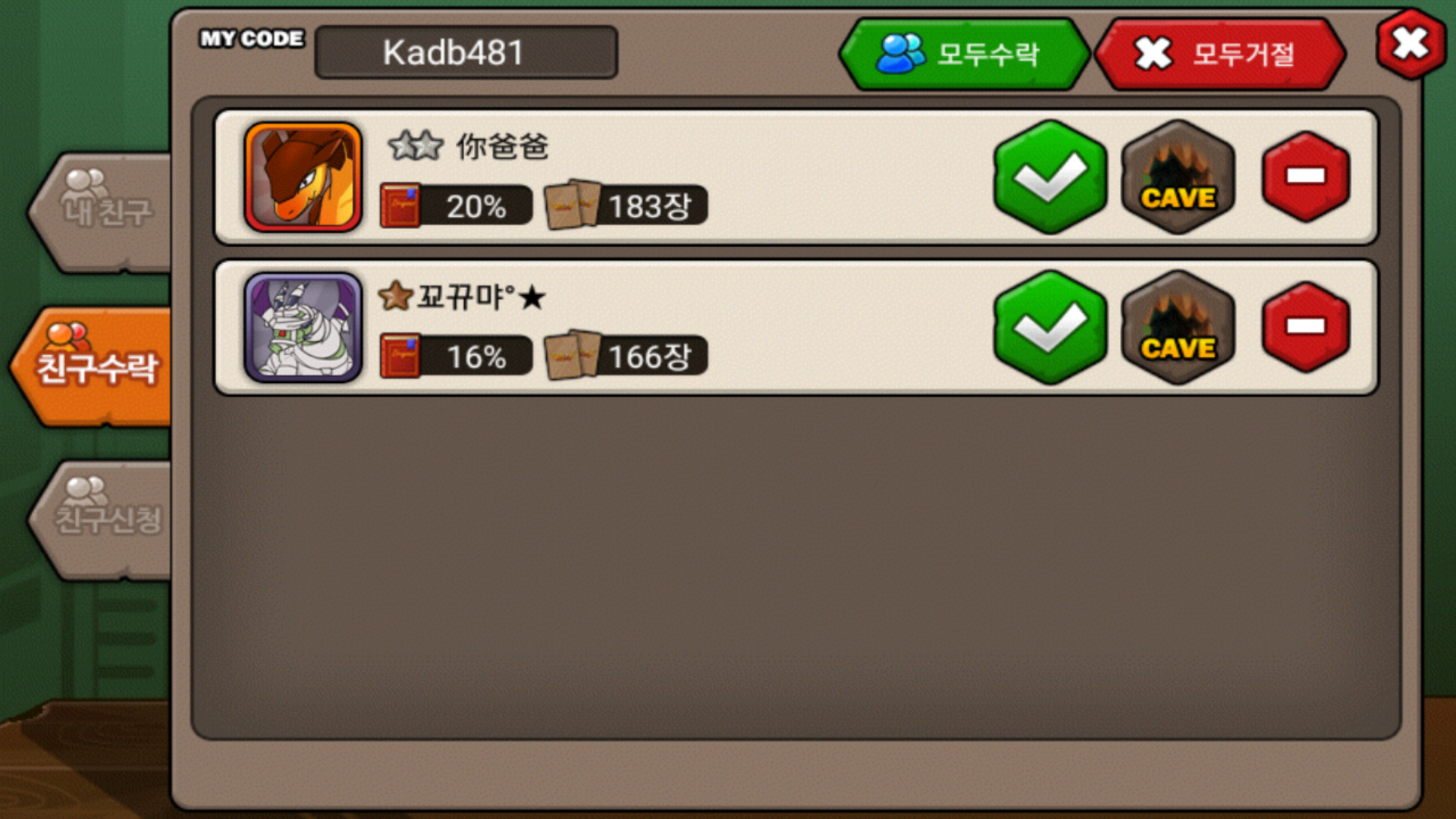 저번에 친게에 제 마이코드 롤렸었는데 그거 보고 친추 거신거면