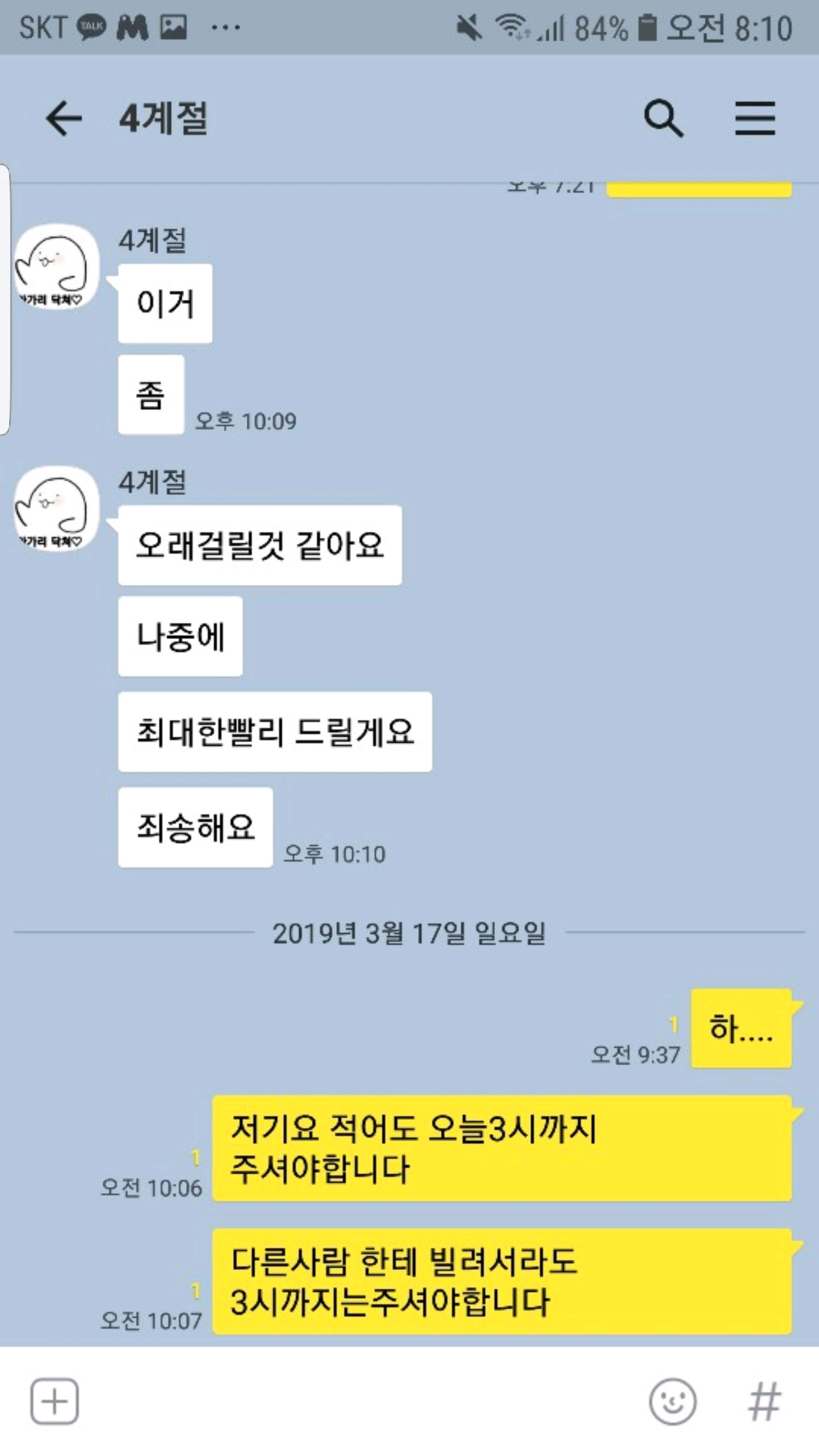5일동안 죄송하다는 말한마디도없이 차단한거같이 톡 보지도않습니다 피어스길드원분들 계절님 행방 아시는분들은 알려주세요