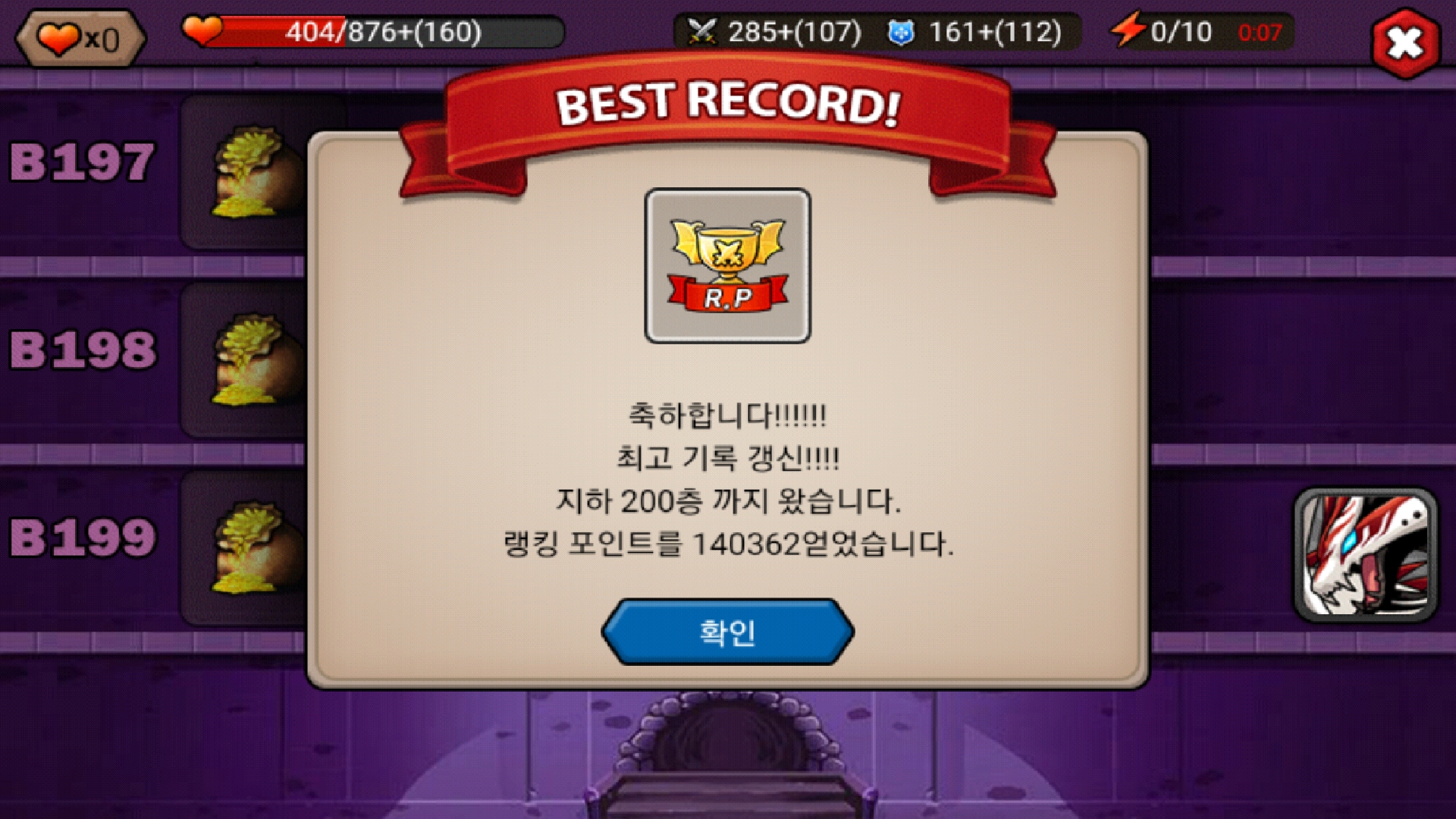 마음먹고 200층까지 갔는데..