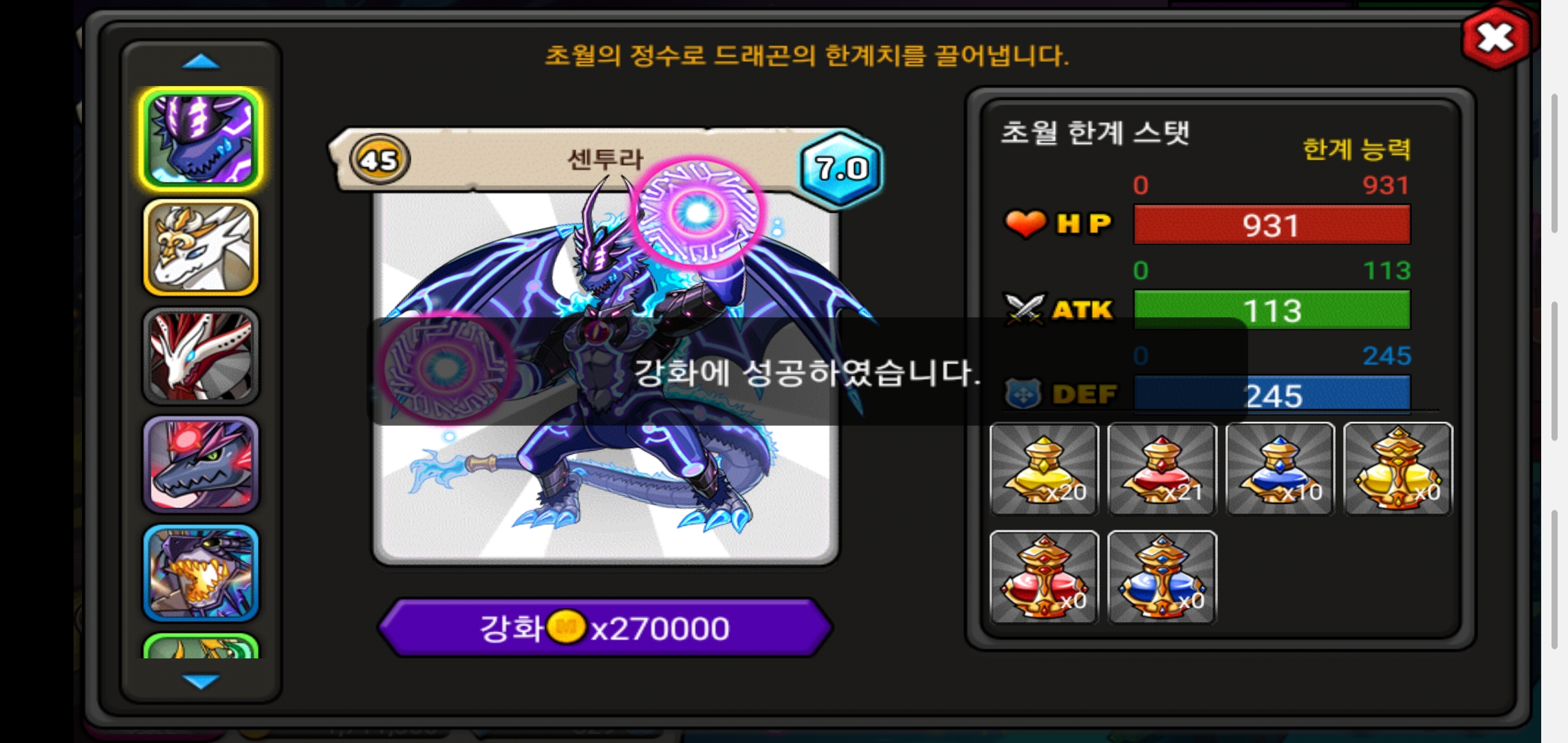 센투라 초월 육성 종료