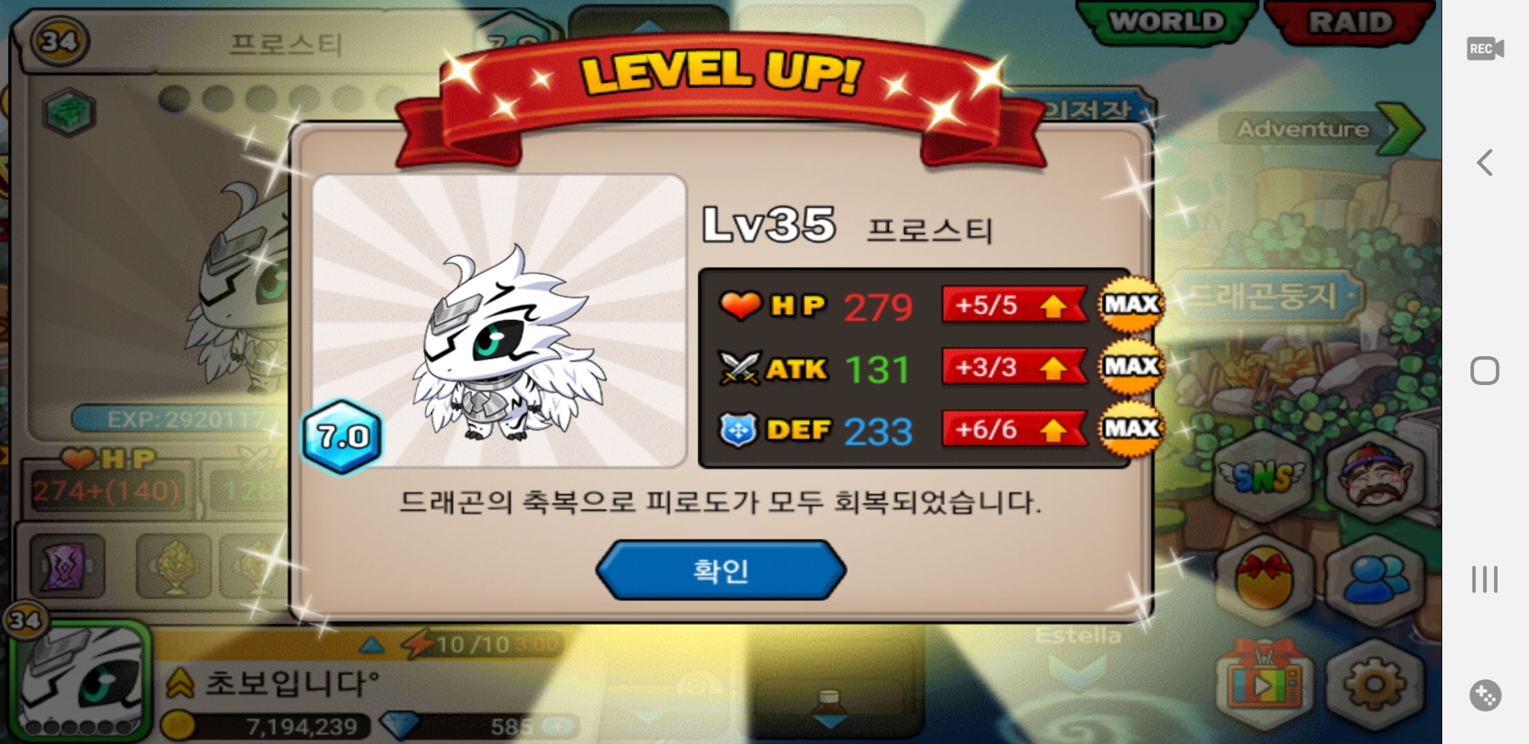프티각성 만렙까지 10렙 남았네요