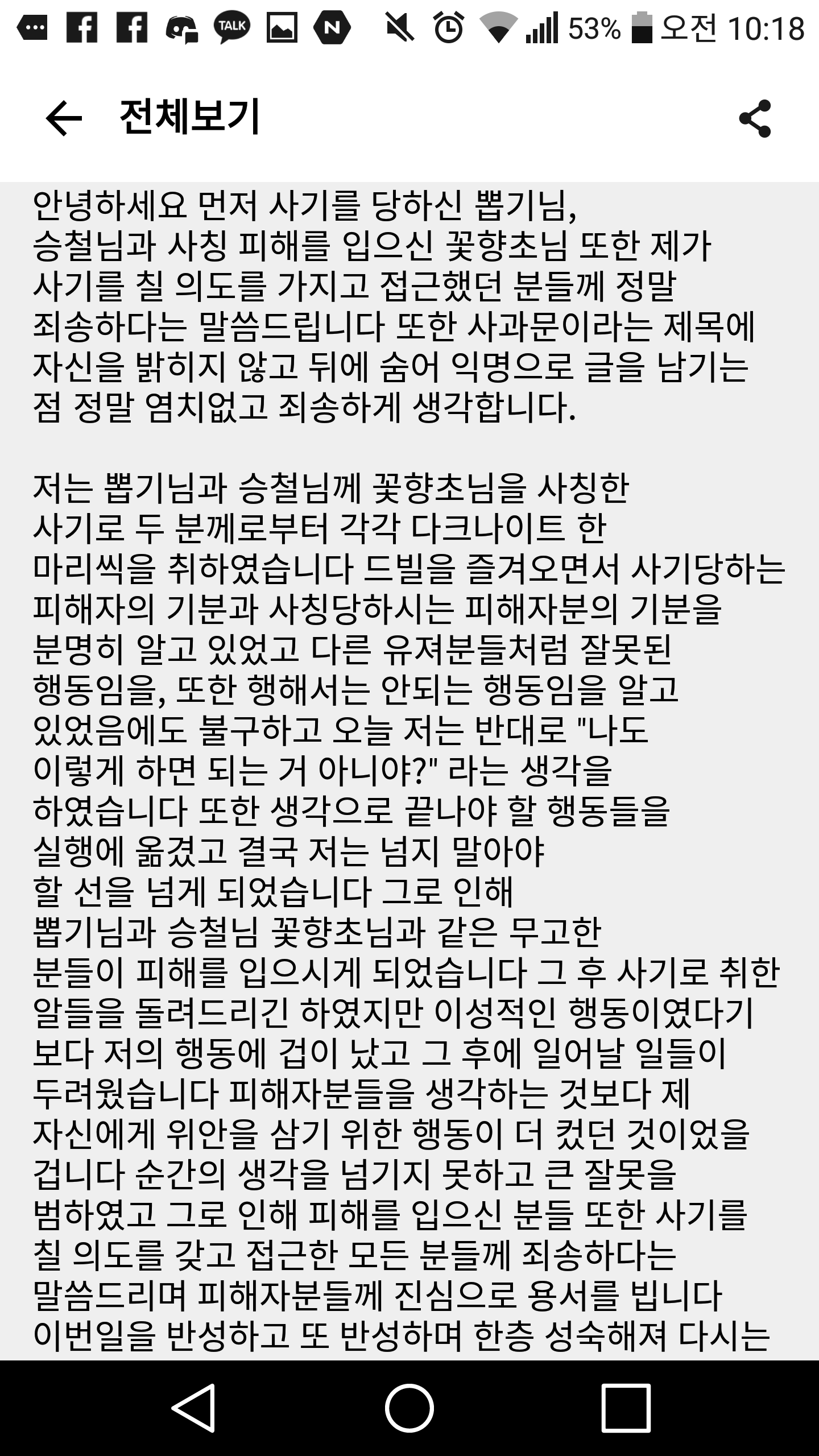 려주었고 번호와 이름을 다받고 갠톡으로 이야기하여 재발방지
