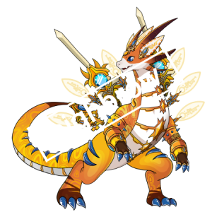 먼저 홈페이지 도감에서 보면 성체보다 더 작게 나옵니다. 인게임에서도 다른 강림에 비해 크기가 많이 작습니다. 이전 단계와 다르게 갑자기 자세도 어정쩡하게 되었고 초월에 비해 더 멋지게 변한 부위도 없네요. 그리고 꼬리 왜 다리 사이로 접혀들어갔나요?(보기 싫음) 게다가 배근육 때문에 별로라는 평도 많아요.(그래서 레어장식으로 가리는 경우가 대부분) 정말 최악입니다. 나온 후에 욕을 엄청 얻어먹었어요. 애는 진짜 다시 그려야 합니다.