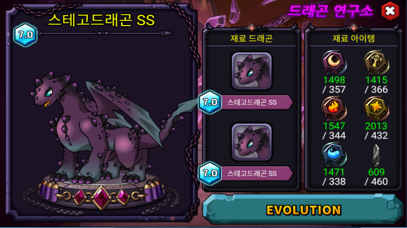3일동안 ss 8마리 1업당 1스업잡고 육성했네요