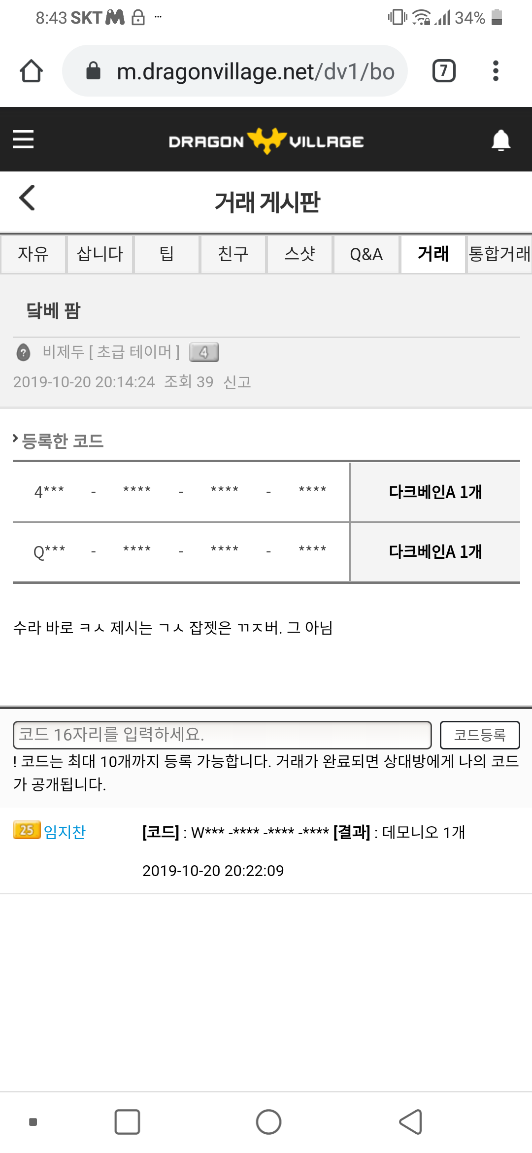 전글에 닼베 거래한 흔적이 없음