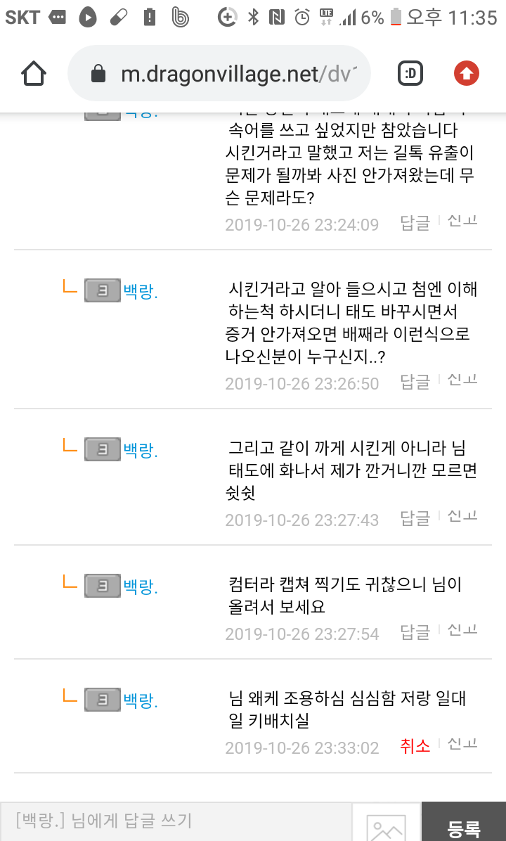 한덕님 그만감싸시고요 키배치는게 자랑은 아니죠 그리고 이미 비속어 썻잖아요 ㅎ 제일 욕많이한분이 왜그러새요 키배 잘치는게 자랑이세요? 애초에 길톡 때메 무서우셧으묜 한덕님이 시켯다 왜 말하세요 한덕님이 시켯다 길레 증거달라는게욕먹을 짓인가요 ㅎ 틸키 123님이 영님이십니다.