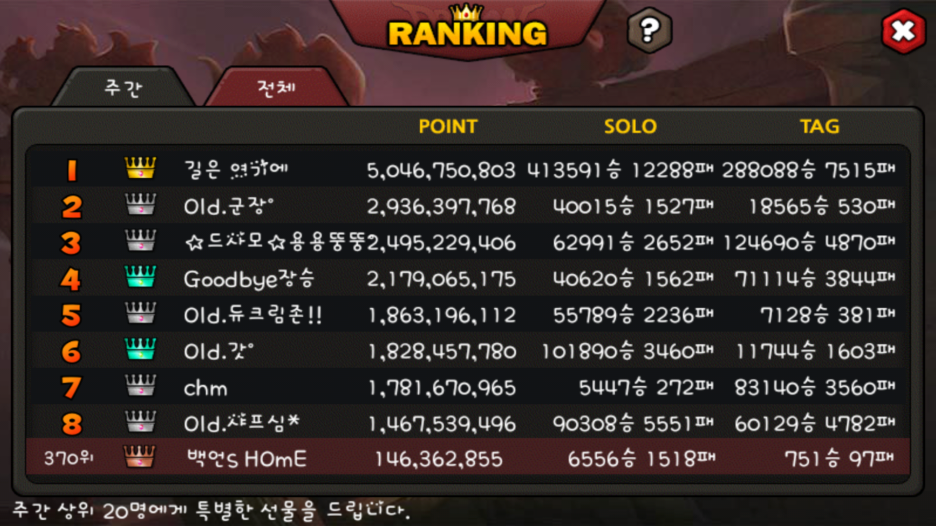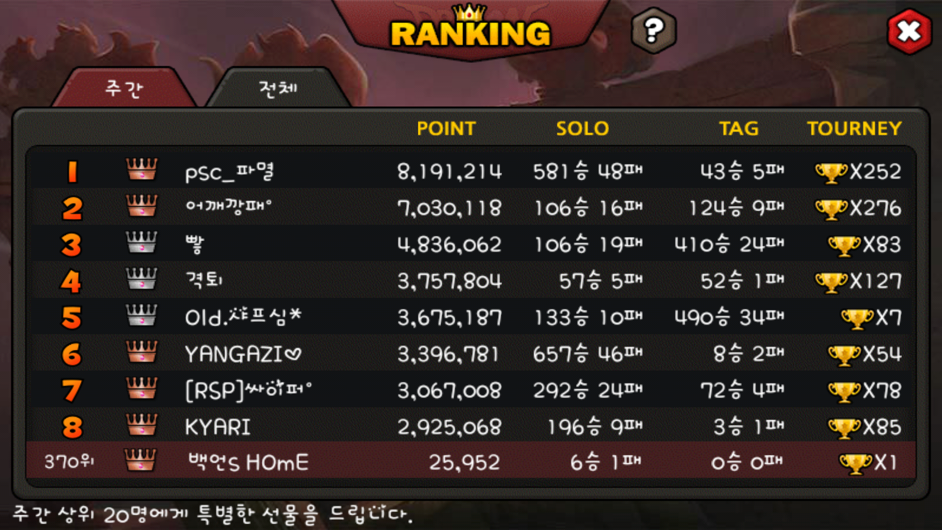 정지 먹었어서 8명 자리 남네요