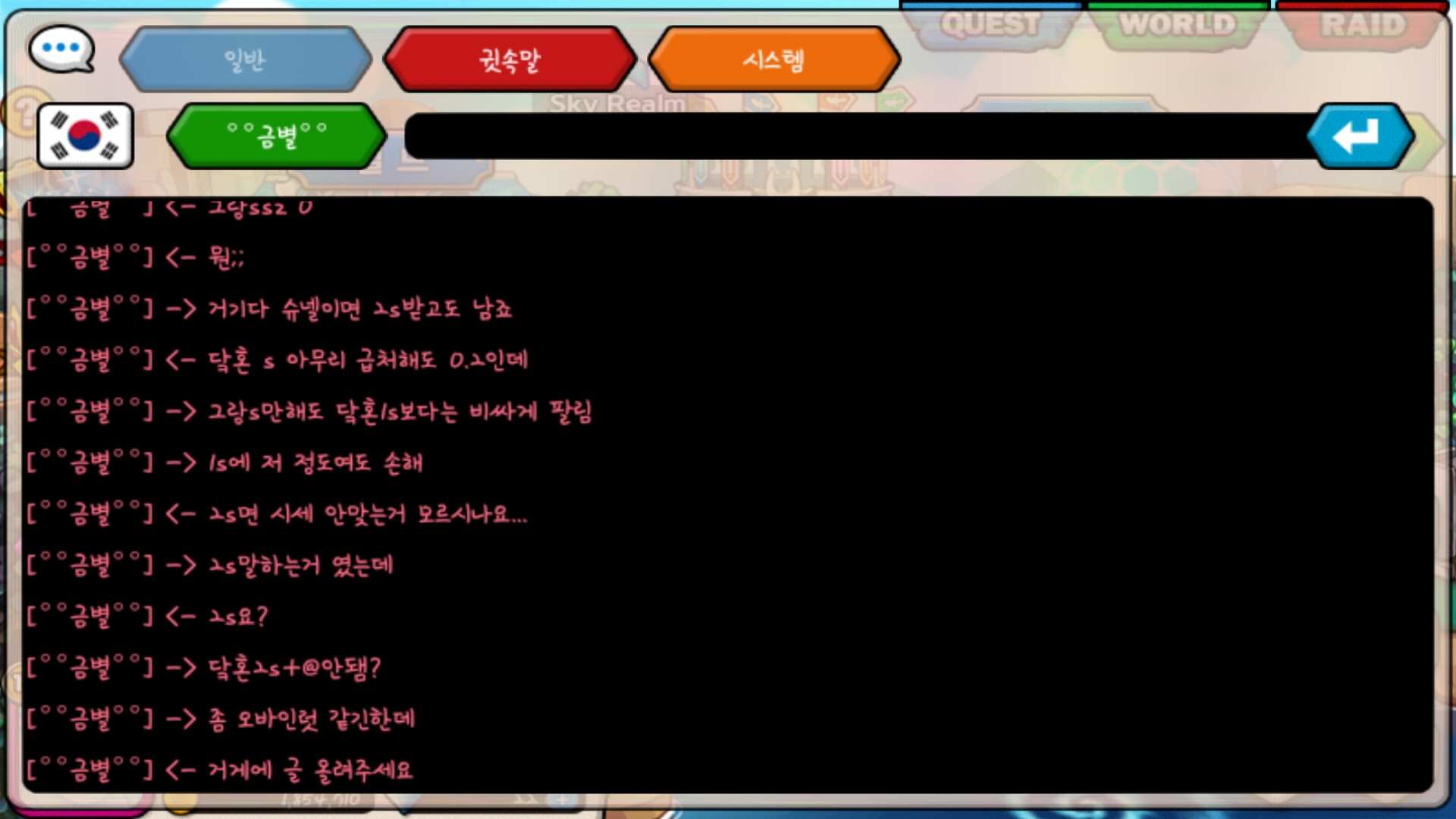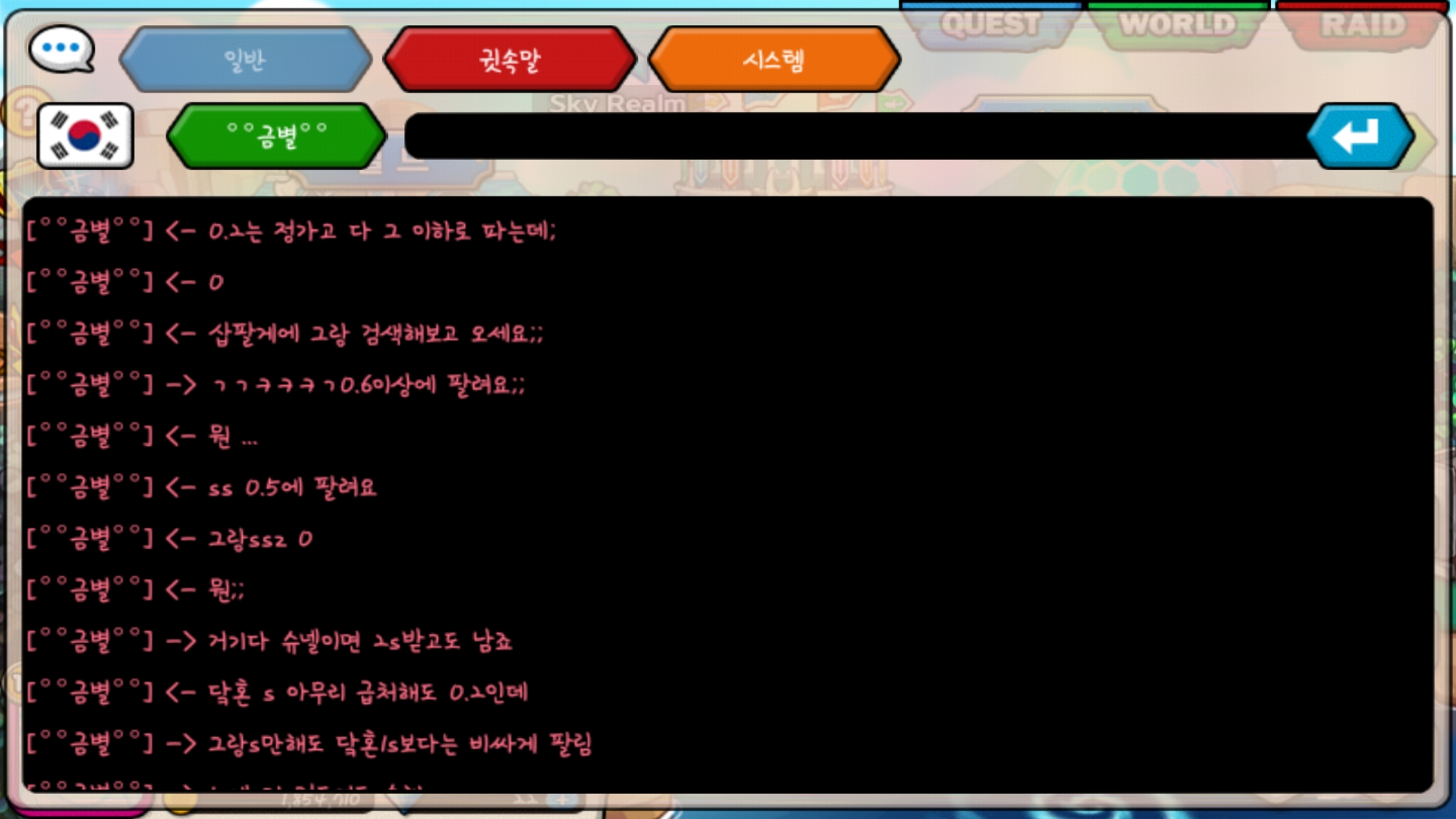 그리고 1채를 보다 본샤스 c가 0.5라는 소리를 들어 a가 0.5라 말씀드렸습니다. 그런데 갑자기 거미띠 시세계산 오지게 못함 이라는 소리를 하시네요; 어이 없어서 올려요. 그랑 ss 보통 0.5에 파시고 아무리 정가가 0.2라 해도 닼혼 s 급처하면 0.2인데... 제가 시세를 모르는 건가요?