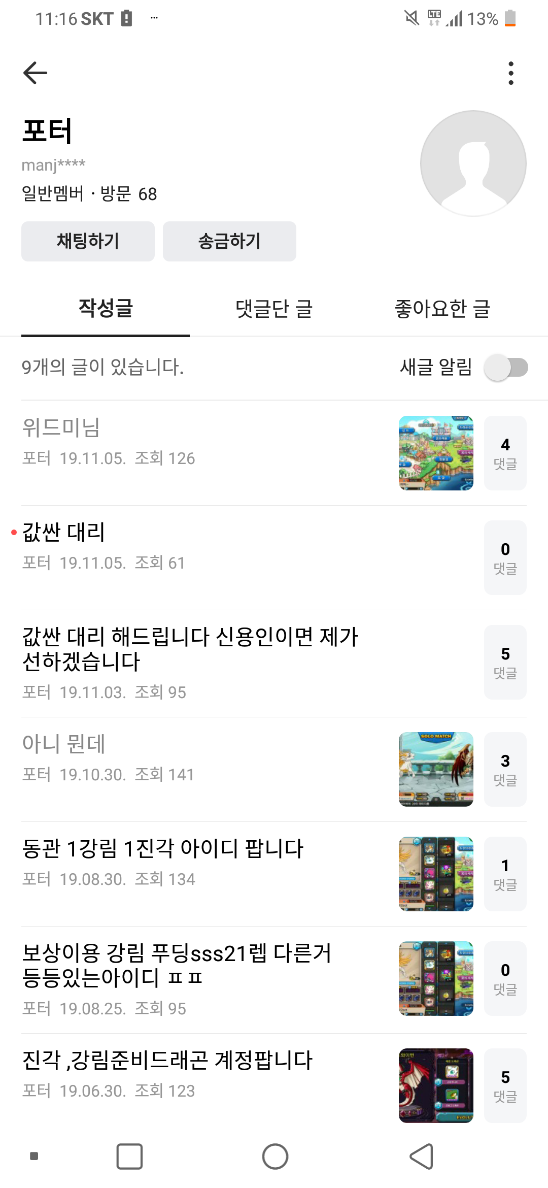 대리사기글 계 판다는 글이 올라왔으나 안팔린거 같아서 인겜닉도 올려봅니다