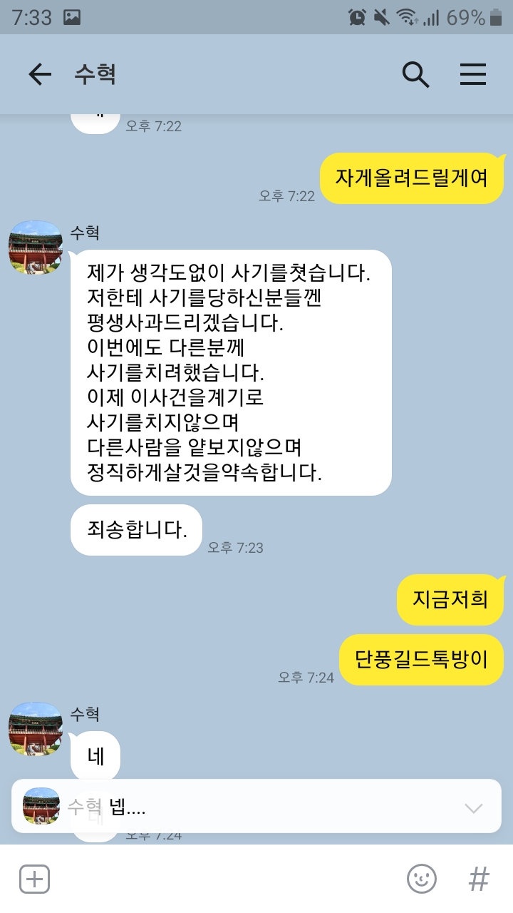 사과문 받았네여...ㅋㅋ