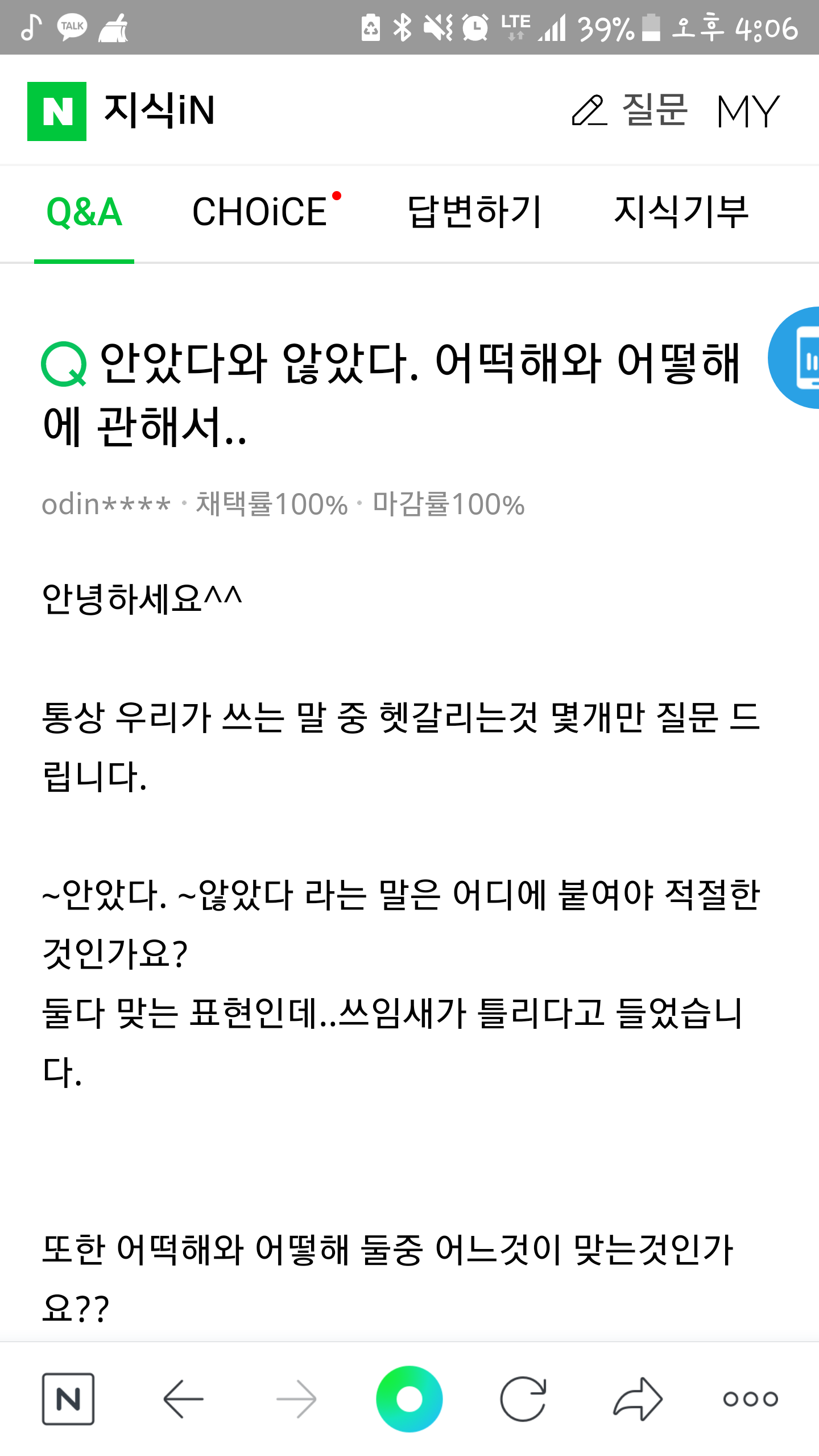 않았다가 틀려서 맞춤법도 못맞추는 희대의 저능아라고요?