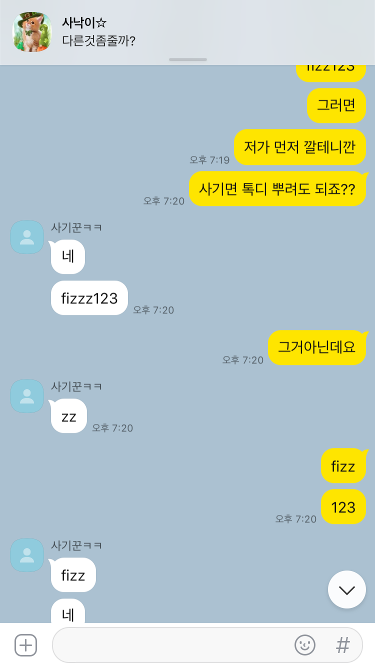 톡디:fizz123 사기꾼입니다