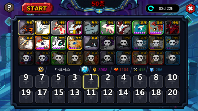50층 되니 15마리 살아있더라구요..ㅋㅋㅋ고스펙 분들이라면 비벼볼만 하겠지만 저는 49층 정복만을 위해 증탑을 올랐는지라