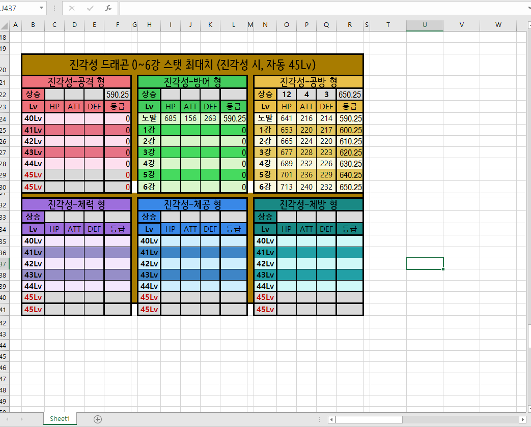 각 유형별로 45렙 0강 스탯, 강화 상승폭 아시면 알려주시면 감사하겠습니다^^