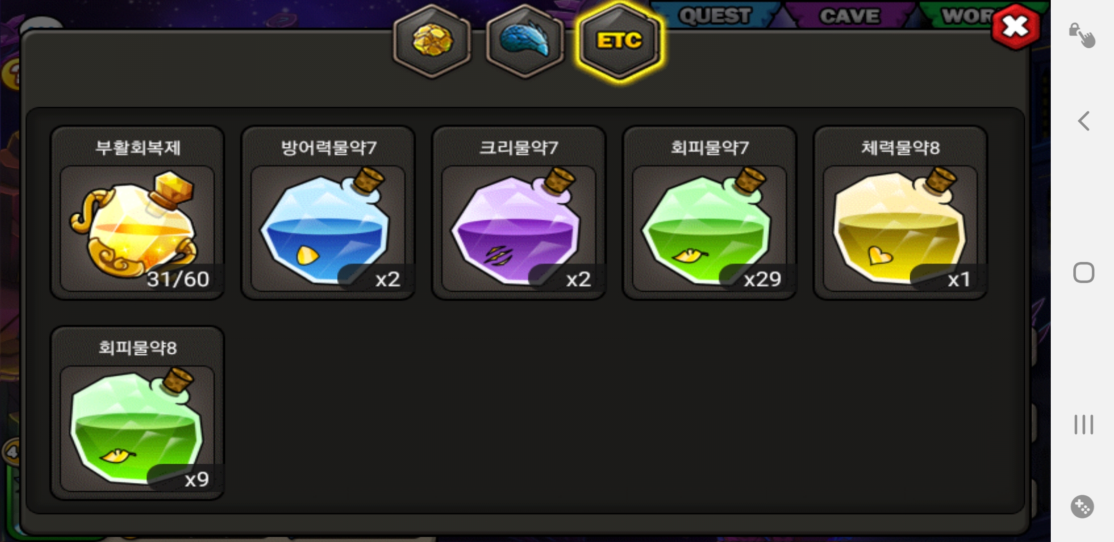 스토리 증명의탑에서 부활회복제