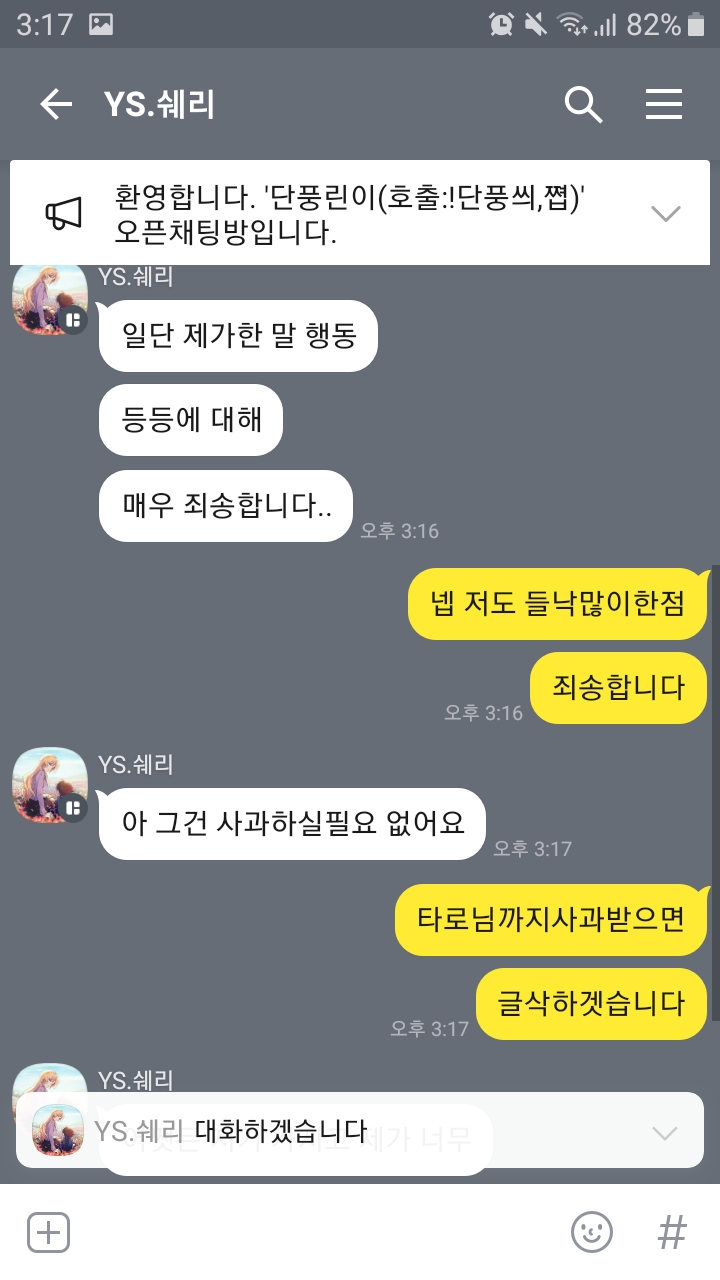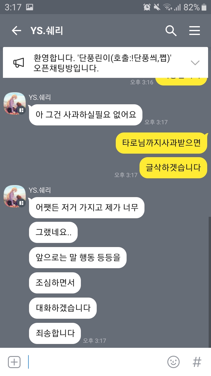 1분에게는 사과글 받앗습니다.