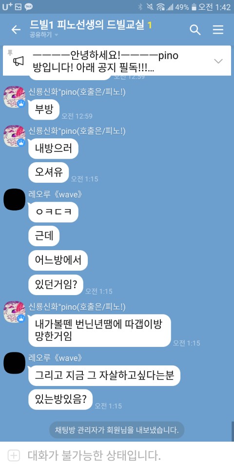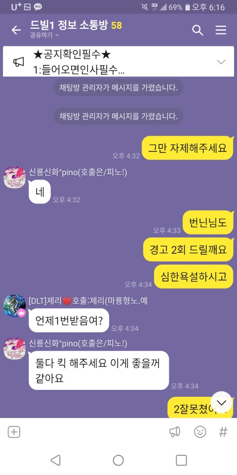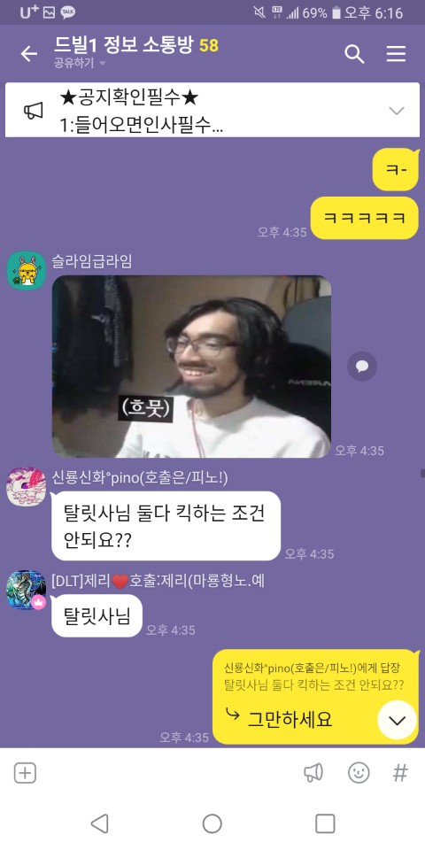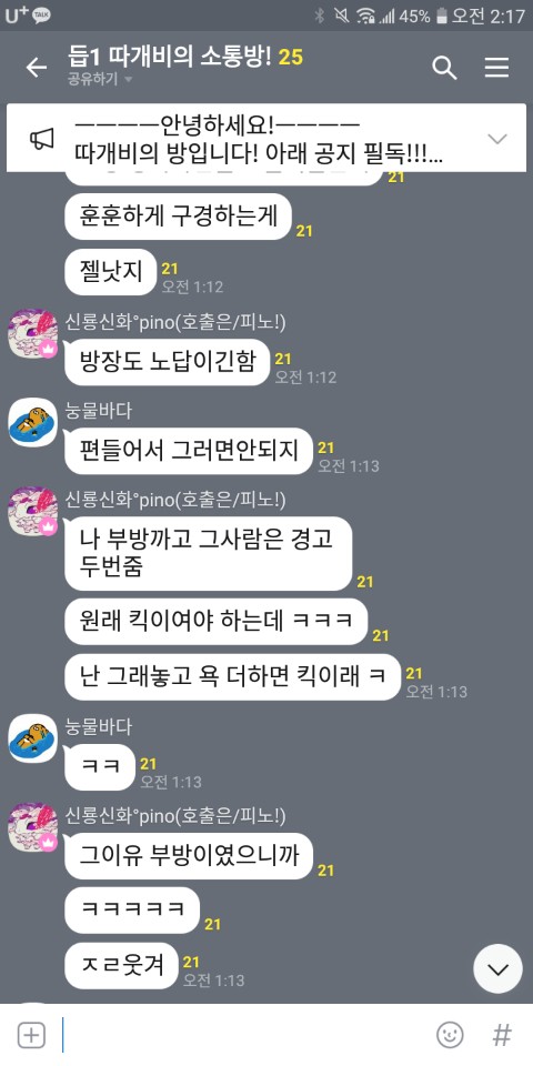 그리고 자기방과 다른방에서 뒷담을 까시더군요 ㅎㅎ 그리고는