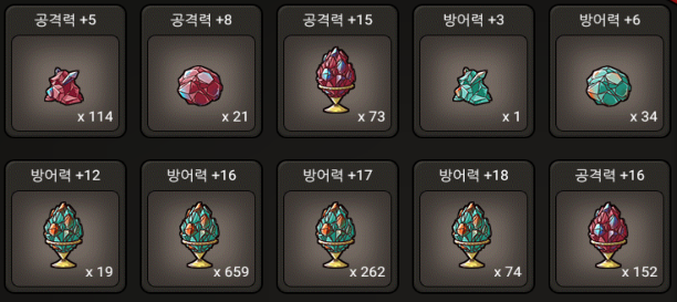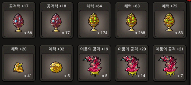 이렇게 수많은 젬들(수많은 예비 파티클)과 찍진 못했으나 수많은 부적과 골드용 장신구들을 지급해주는 좋은 데라구용
