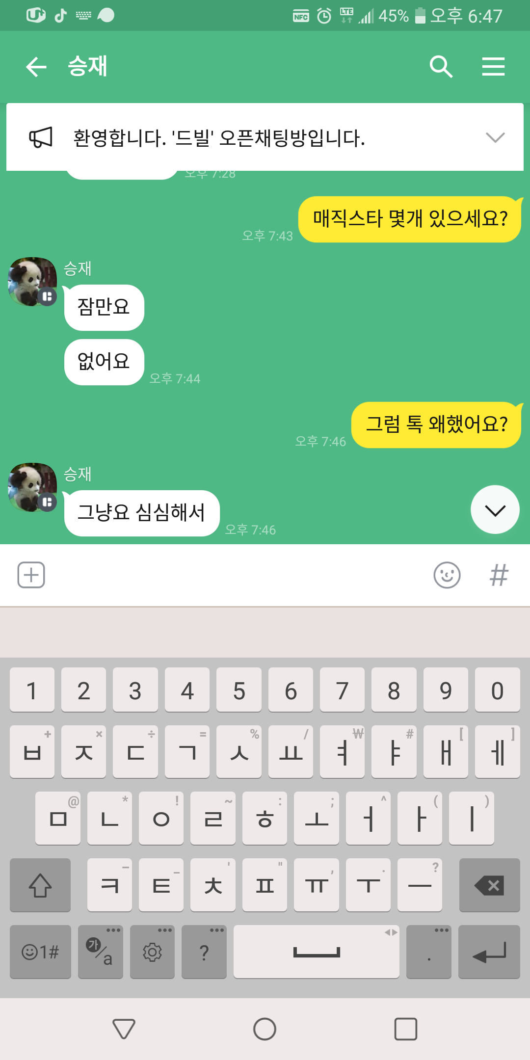 삽니다 팝니다 게시글에 매직 산다고 옾챗 링크 남겼는데 이분 뭐죠...?