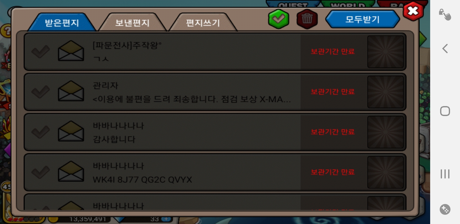 우편함에 보상이들어오긴 커녕 만료된거 빼곤 죄다 삭제당했는데...