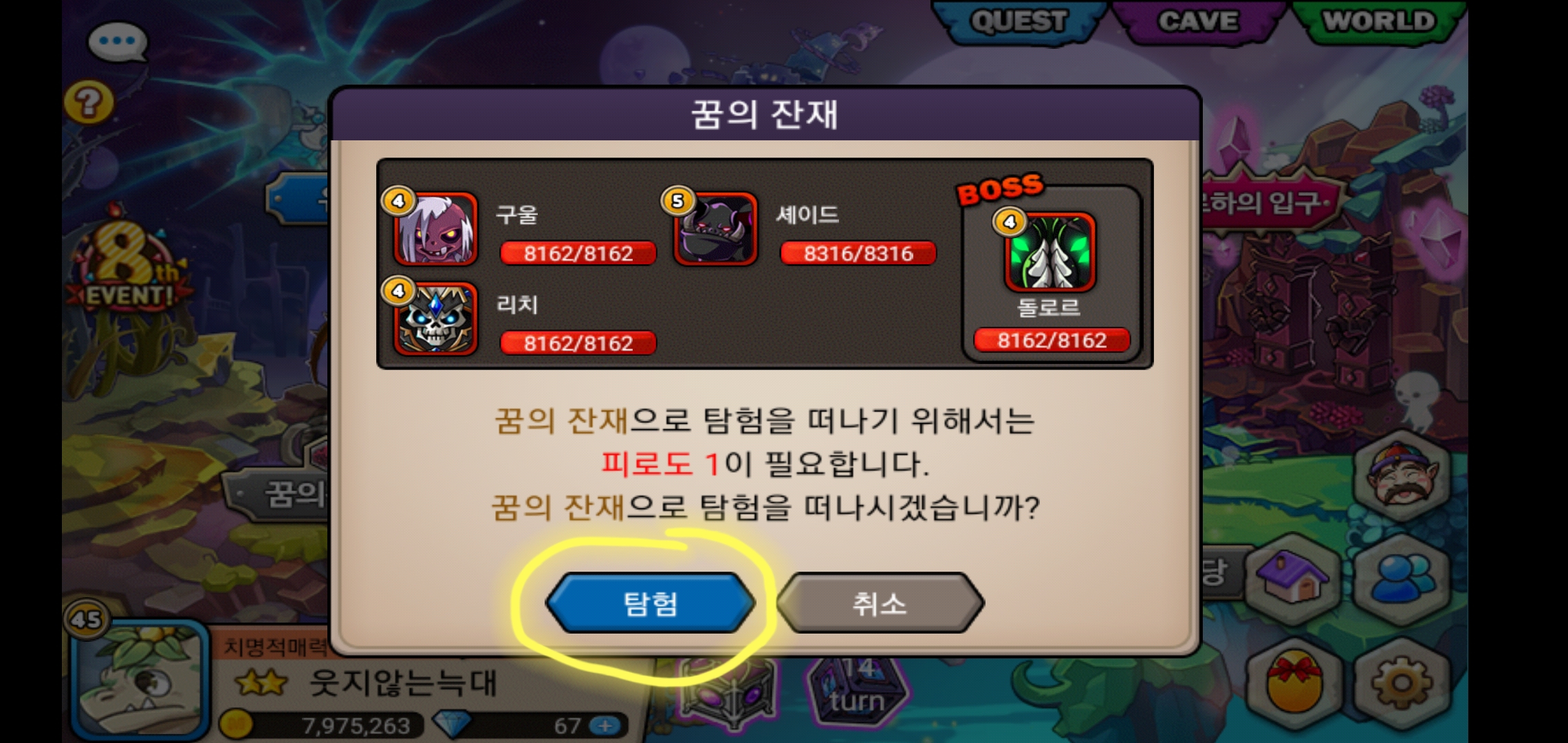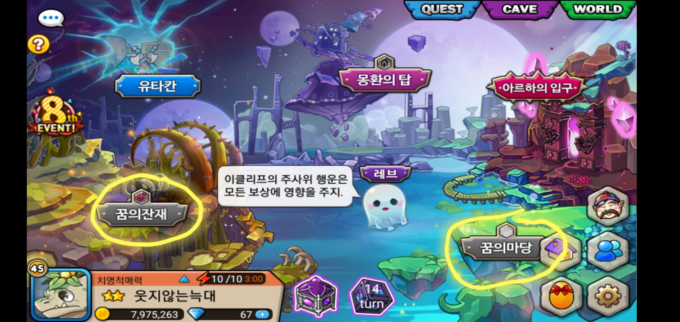 1. 꿈의세계에 주사위 비활성화지역 클릭