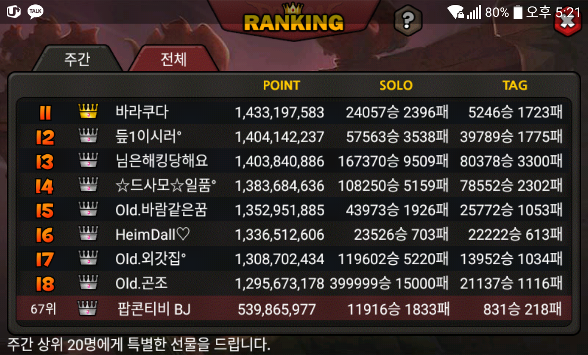 당분간 또 순위 안오를듯