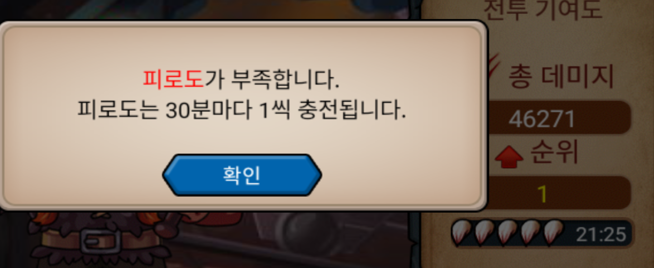 부족하다고 뜨는데 몇 번 싸우던지 다 차있는 모습으로 나와있네요.