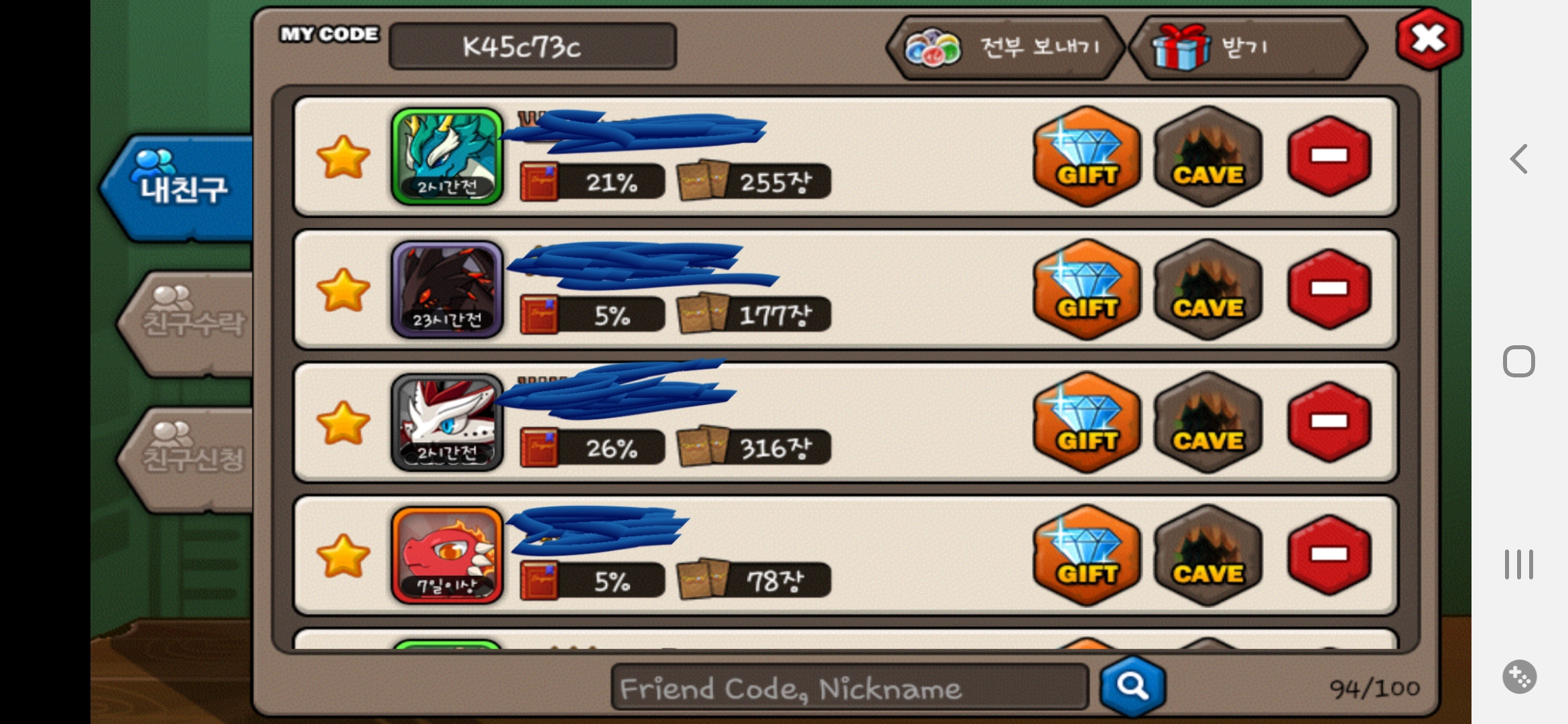 2. 7일이상 미접은 친구삭제함