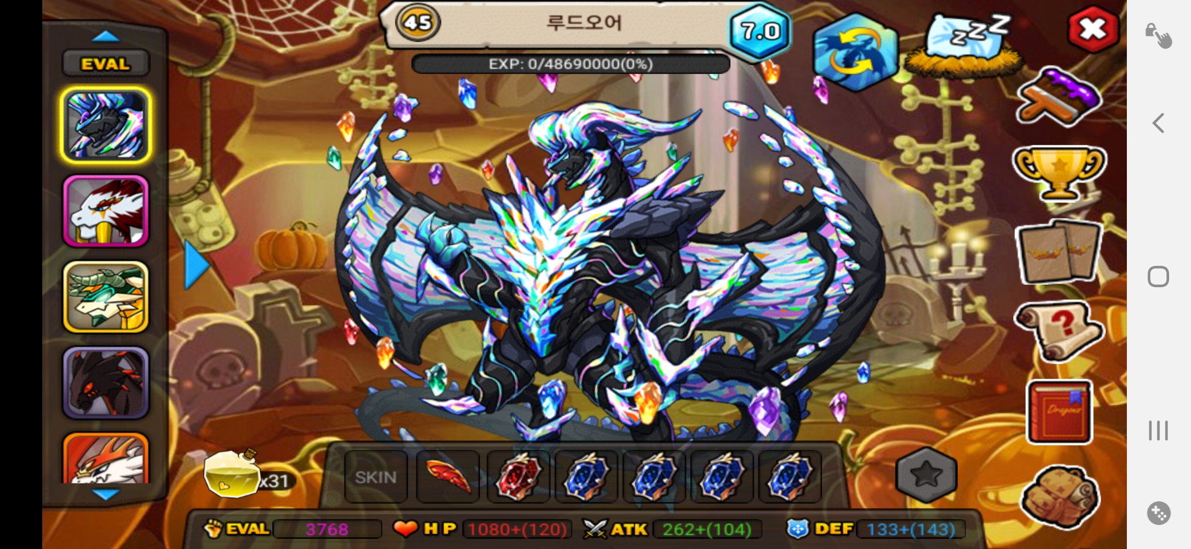 템셋팅은 현재 이렇습니다만 콜로돌릴용도로 최적의 템셋을 추천해주셨음 합니다(물약포함) 단, 템은 아르하의 발톱14 공21첸 고정으로용