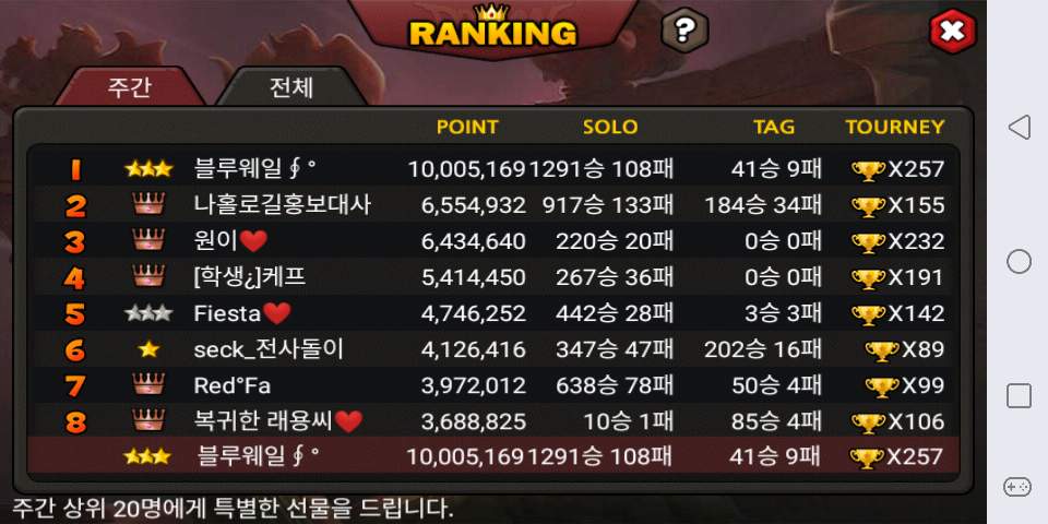 주랭 첫 1위 달성!