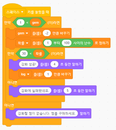 젬 한 단계당 확률이 70% 로 설정해뒀습니다.