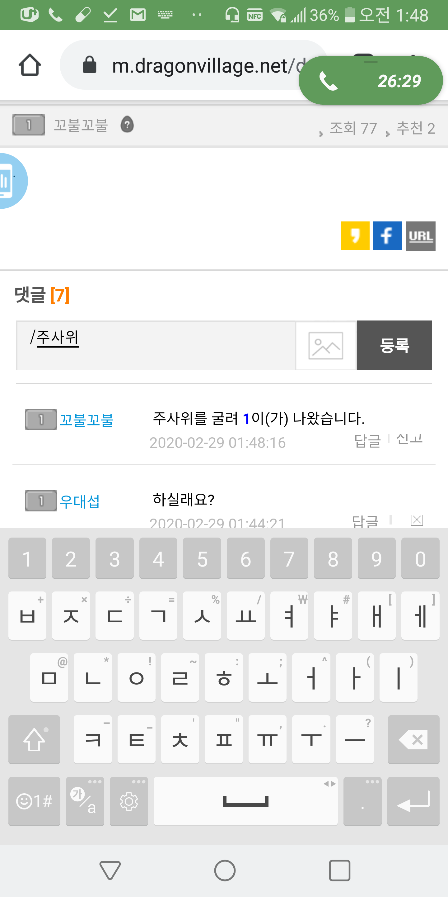 꼬불꼬불님 도박 주사위 삭제하셨네요