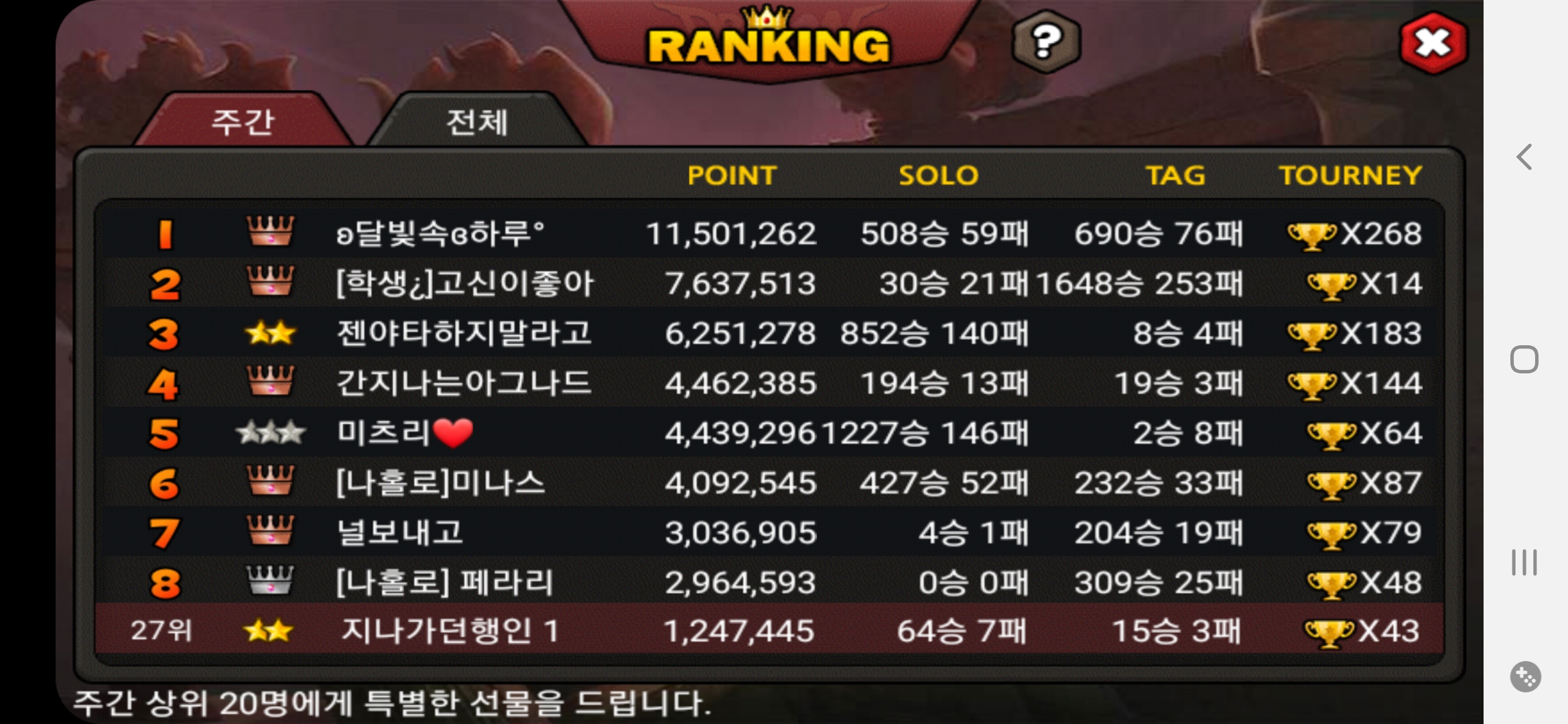오우 순위권 박탈이네여..