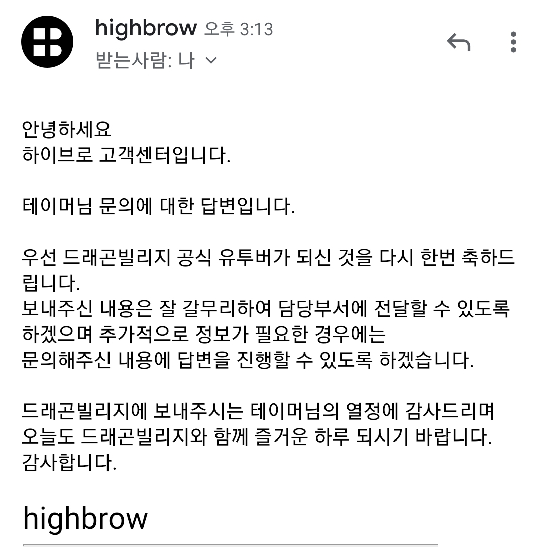 문의 넣고 다음날 2일후에 라도 답변 오겠지 하며 기대를 했는데