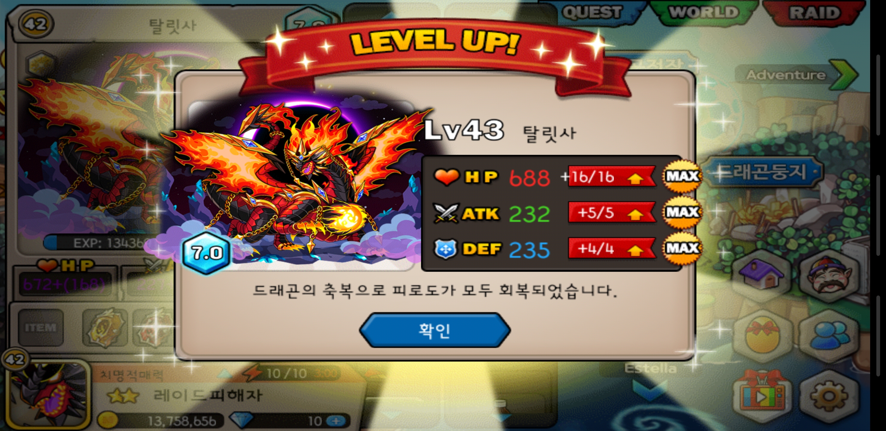 만렙까지 단 2렙 남았다