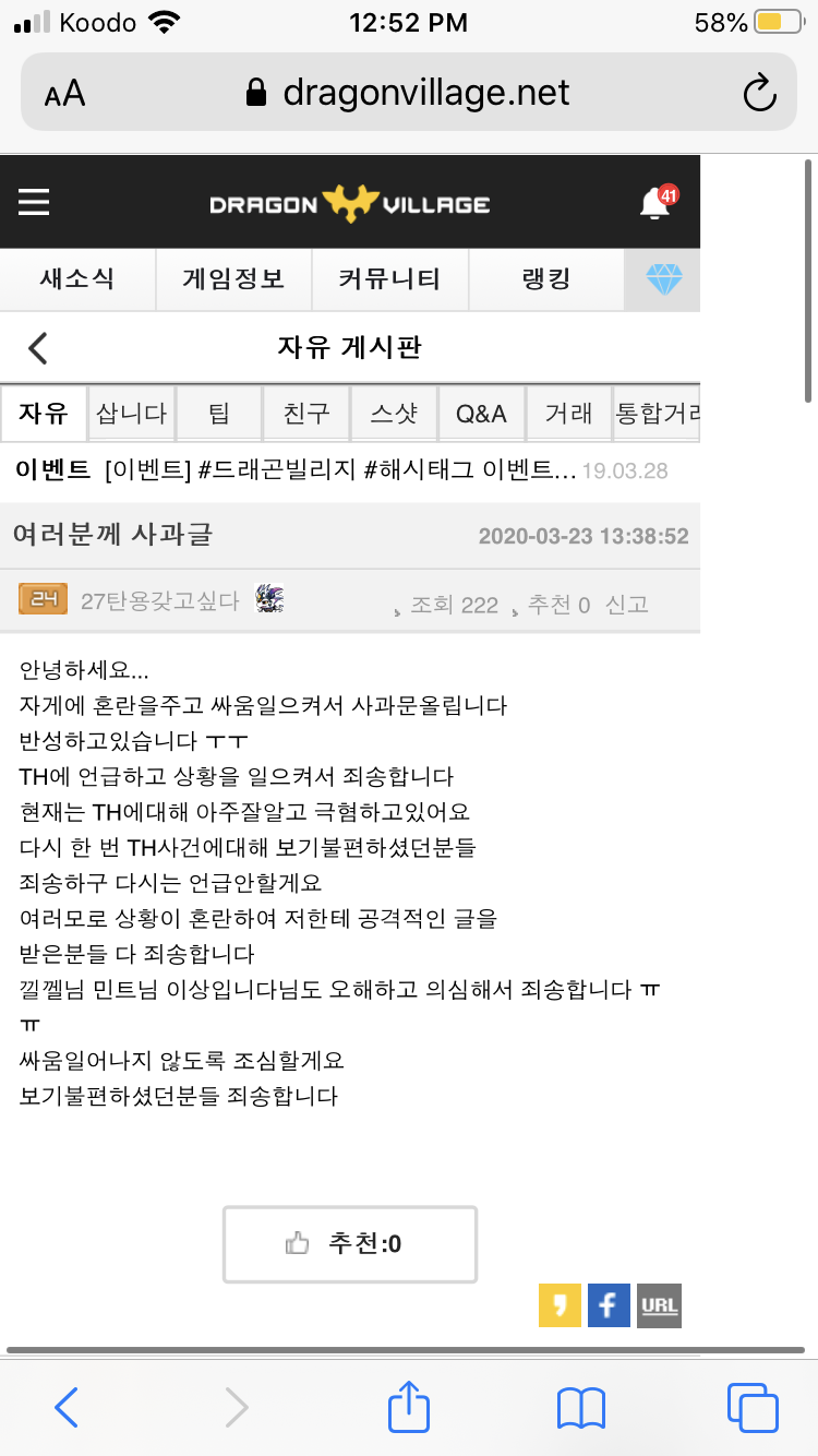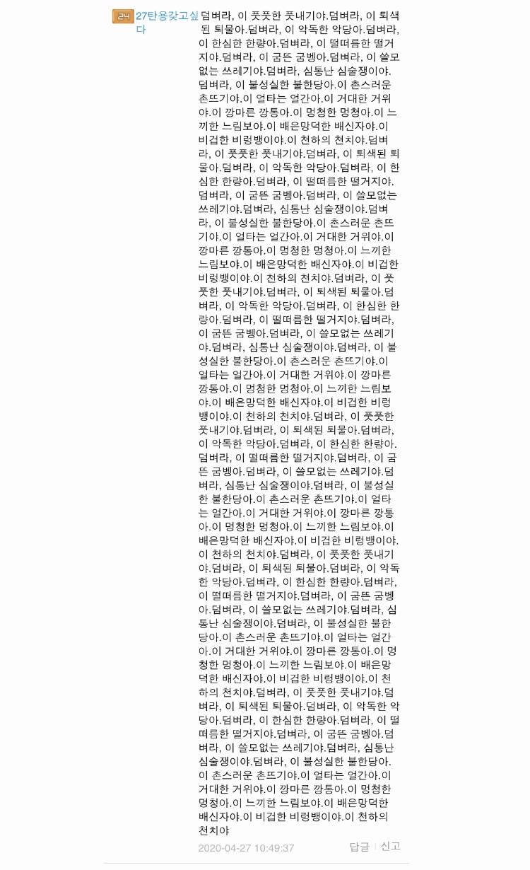 이 밎에글은 준혁이 한테 쓴건지 기억 안나지만 나이 연령 잘 보이네요~ 저번에 싸운 다음 안건드리고 뉍뒀는데 갑자기 또 개소리 하네요.