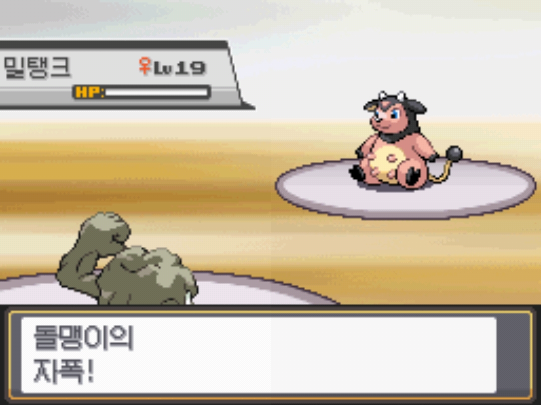 아주 강력한 핑크색 악마... 아니 밀탱크의 짓밟기에도 단단한 돌맹이는 잘 버텼습니다.