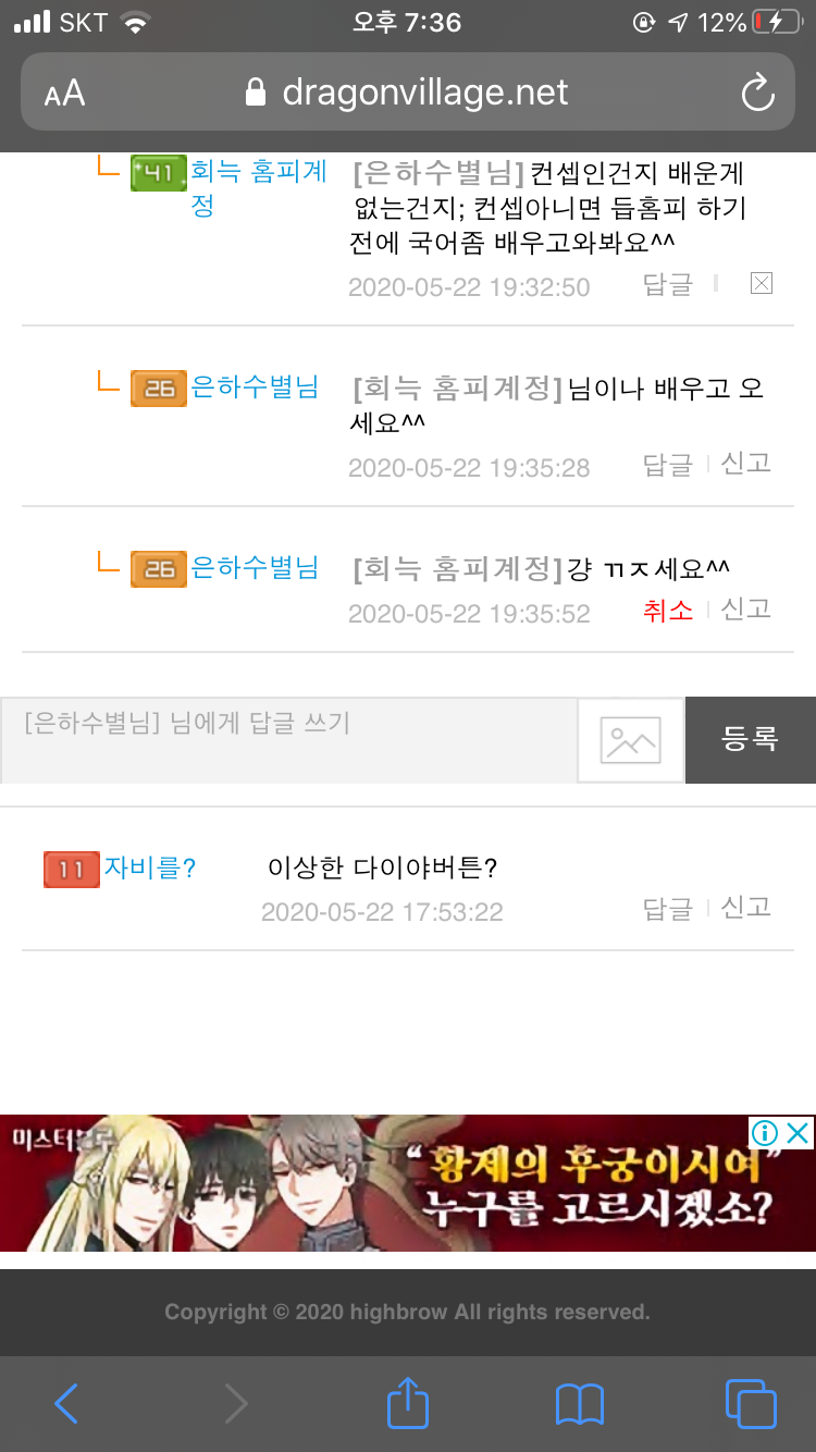 욕 써놓고 댓삭하는 찌질이..은하수별님 그만하세요
