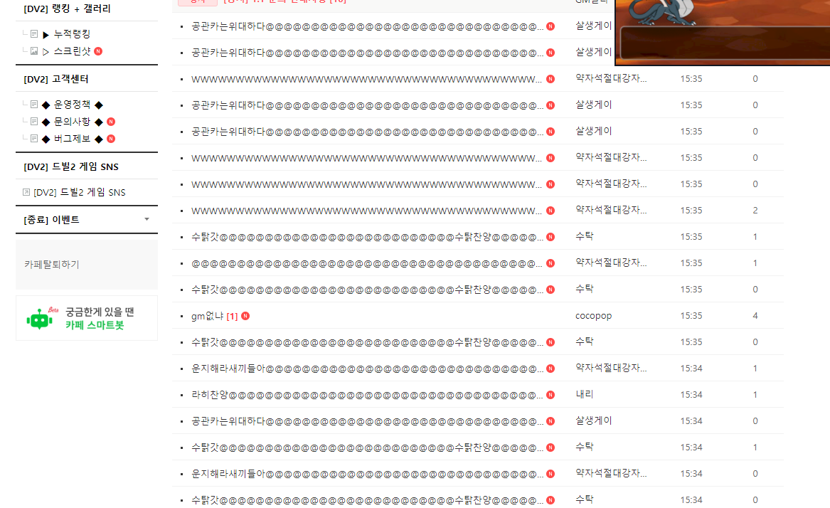 듭2카페 상황