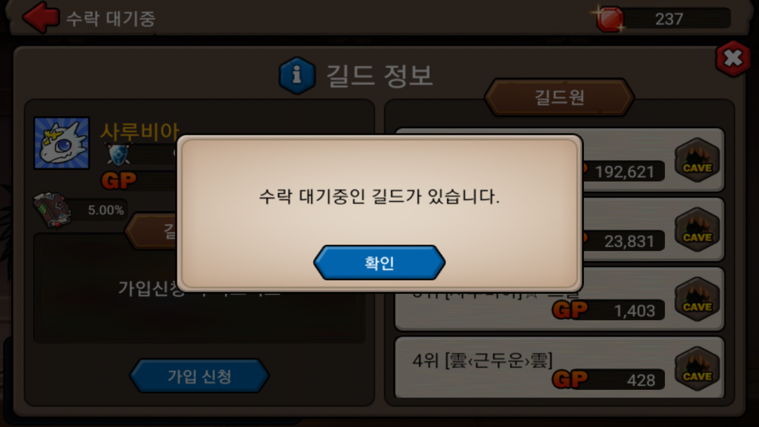 근데 다른 길드 가입하려고 가입하기 눌렀는데