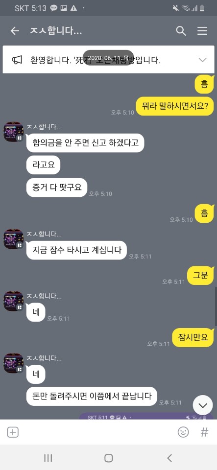 계정도 찾았고 사과도 했는데 20이나 받으니 좋냐며 초면부터