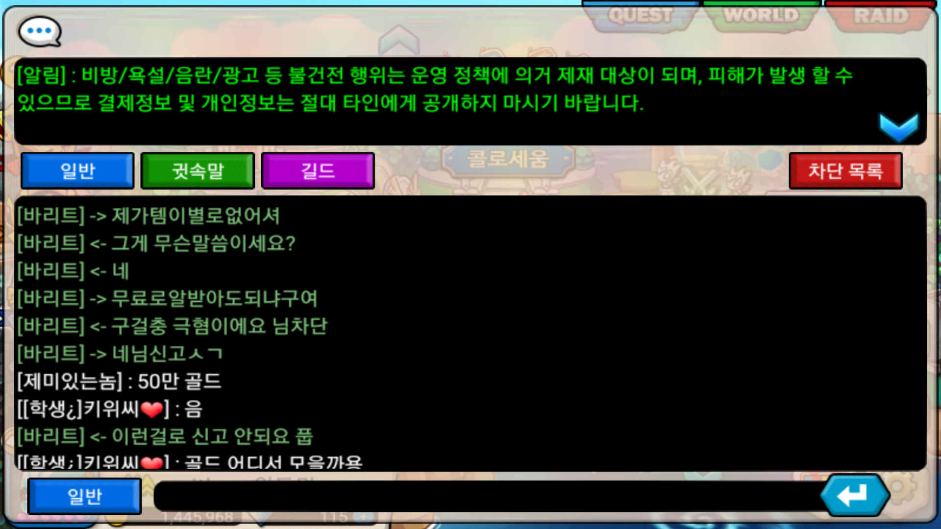 어떤 분이 다닉있는사람 귓이라고 해서 귓했더니 자기가 막 템이 없어서 저한테 알들을 달라는 겁니다 그래서 '구걸충 극혐'이라고 했더니 저를 신고한다네요 저도 초보인데...