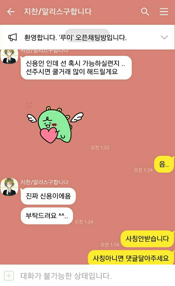 지찬님 사칭있습니다