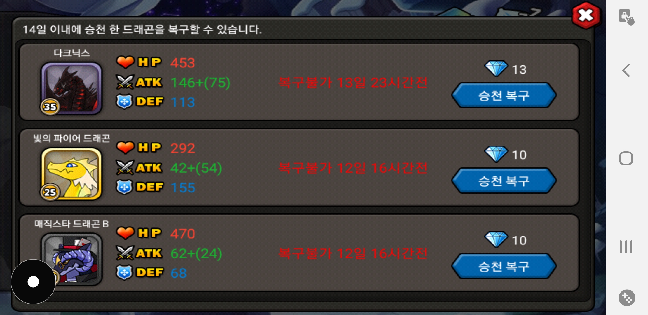 겜에 로그임 하니 드래곤들이 증발했네요