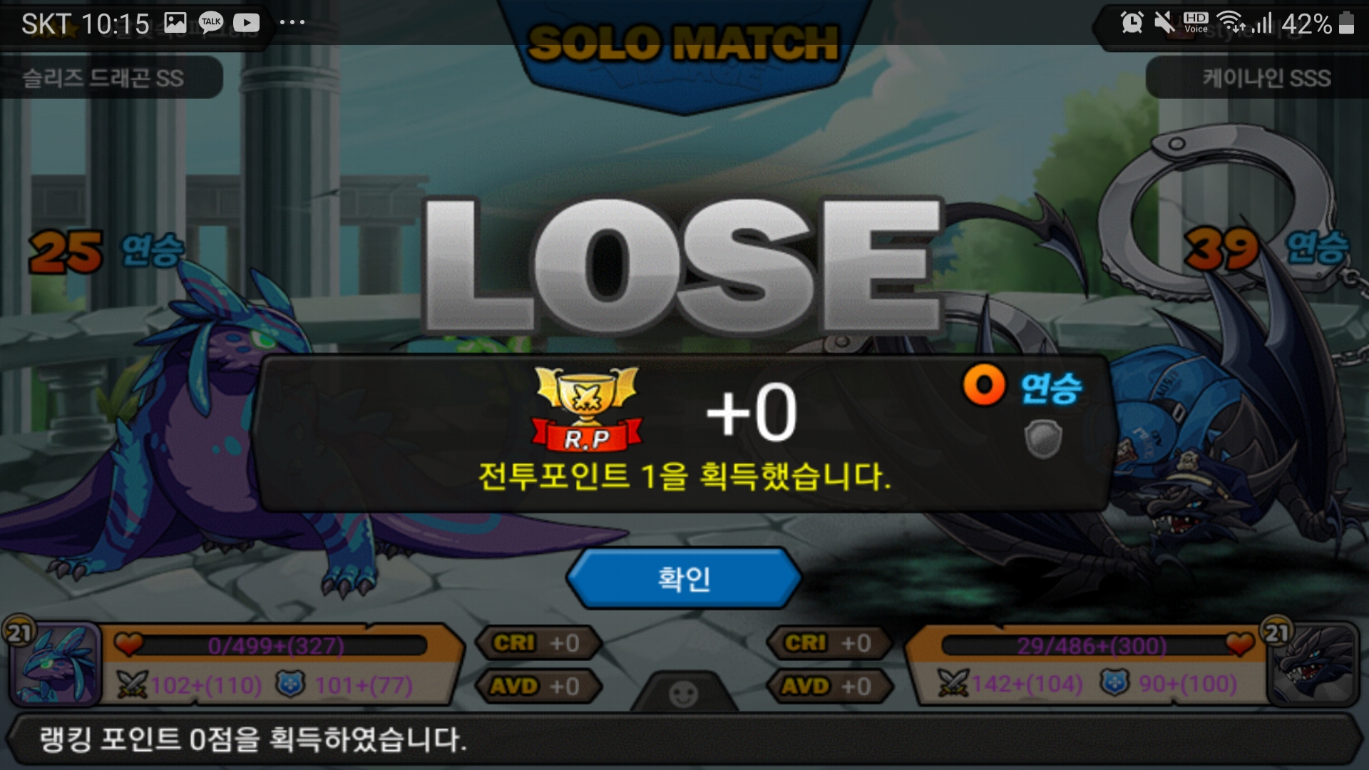 슬리즈 연승종료