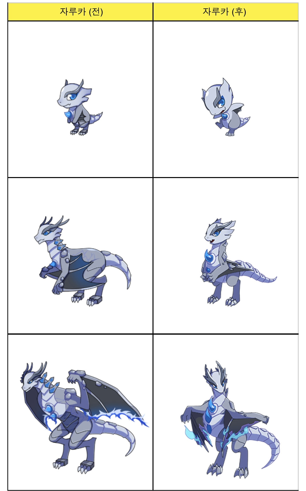 리메이크 전은 너무나도 대충 만든 느낌에 색감이 아쉽고, 리메이크 후에는 전체적인 색감과 해치, 해츨링은 준수하나 성체에서 엉망의 구도가 나왔죠.