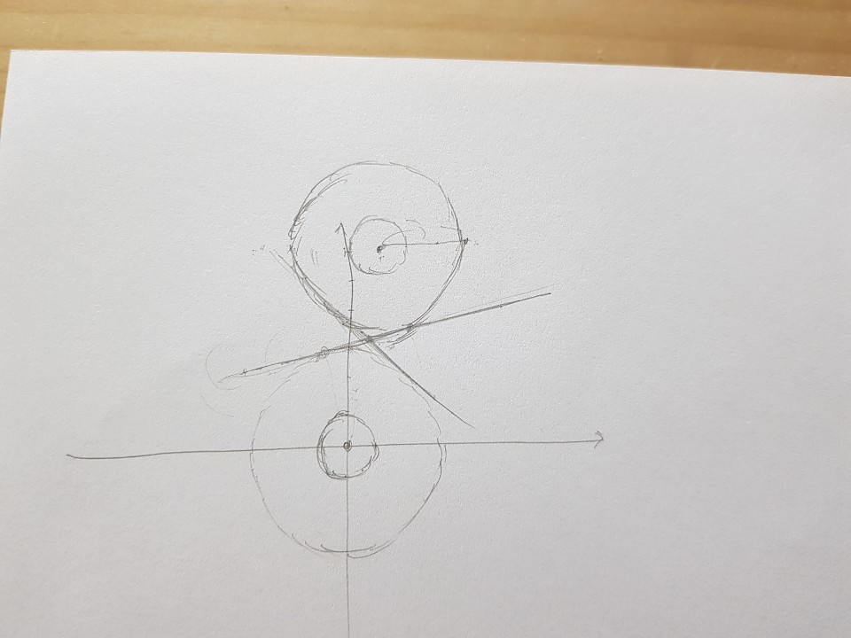 초기원 2개를 반지름 3으로 확장시켜 공통접선 그어서 풀어보고 있었는데 문제가 사라졌네요