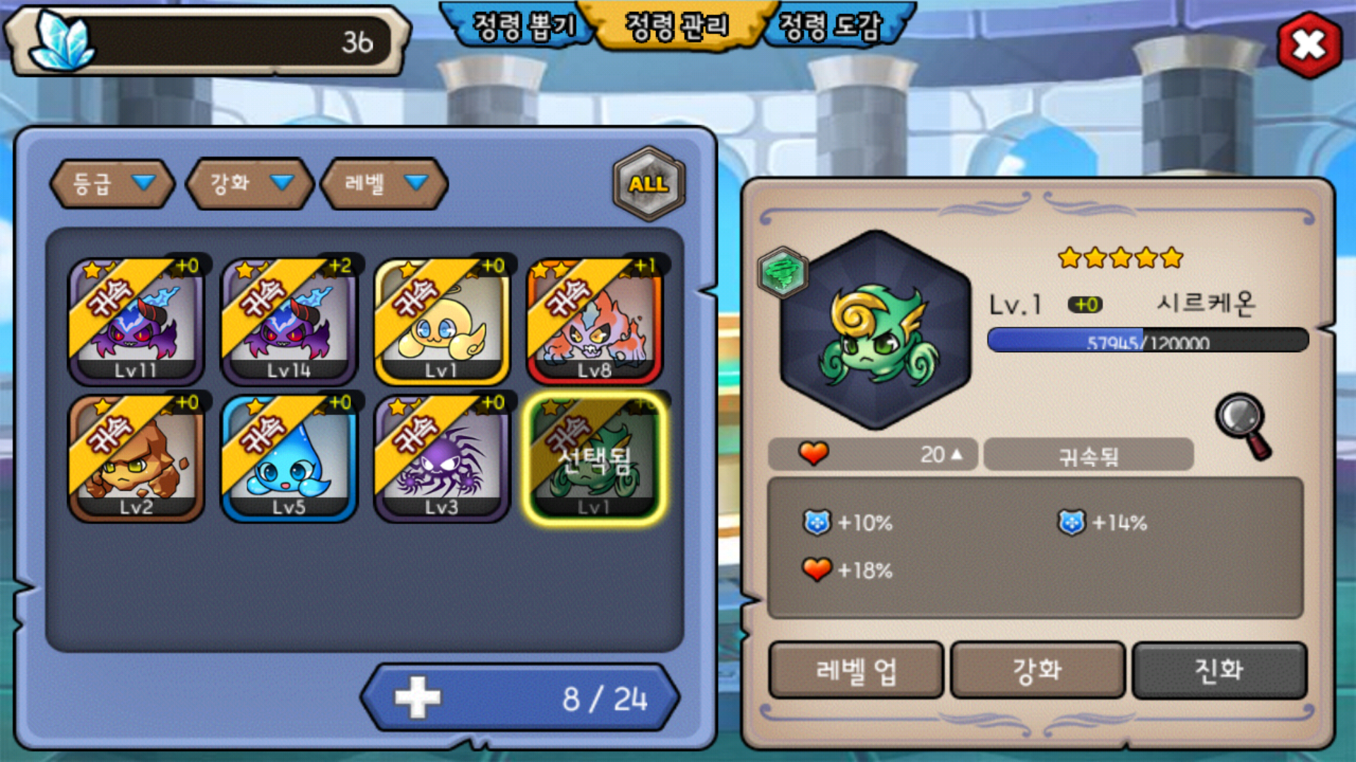 이렇게 3퍼 정령들이 좀 있는데요 어떤것들 합성하면 될까요?