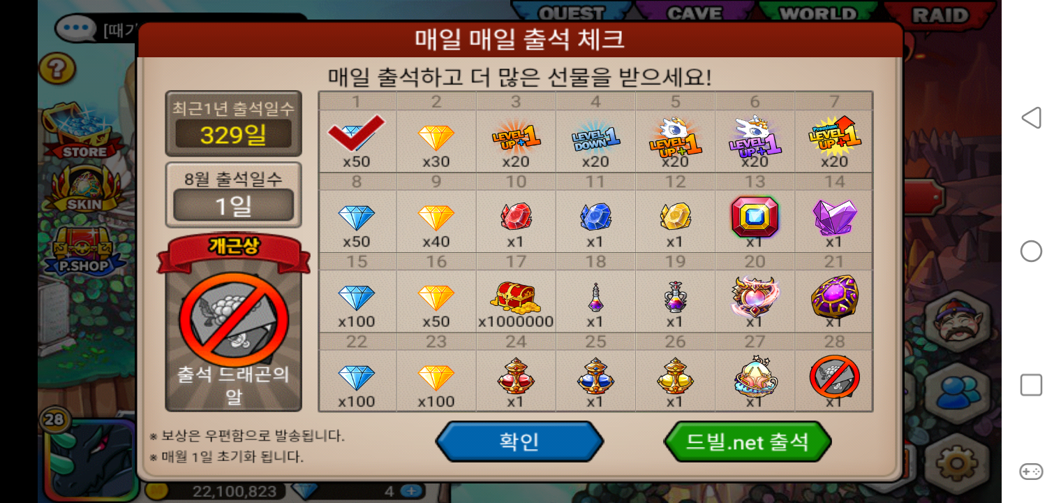 출석 드래곤의 알