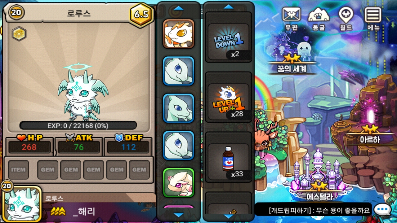 로루스 20렙 찍으면 인증샷 남길려 했는데 확인 누름.. 이런적이 몇번이냐..;; 암튼각성까지 20렙 남았네요 헿